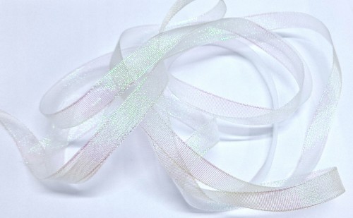 Wstążka tasiemka biała opalizująca 2,5 cm x22,5m dekoracje DIY brokatowa