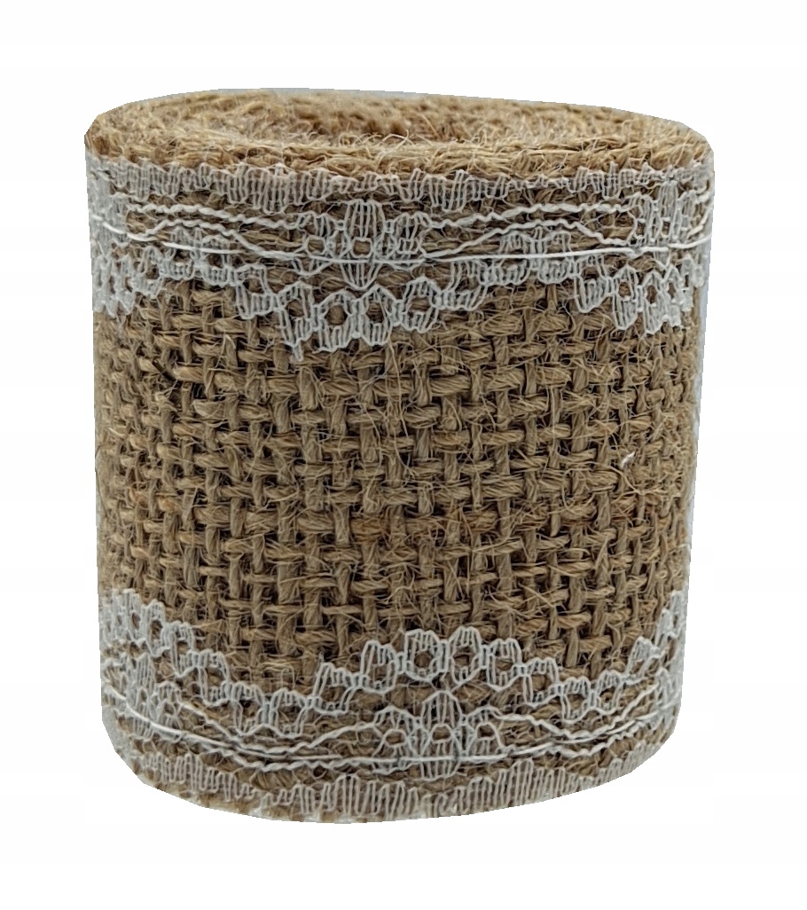 Wstążka tasiemka jutowa z koronką naturalna rolka 5 x 180 cm DIY dekoracje