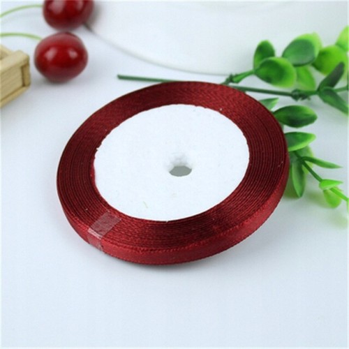Wstążka tasiemka satynowa cienka bordowa 6mm x 22m