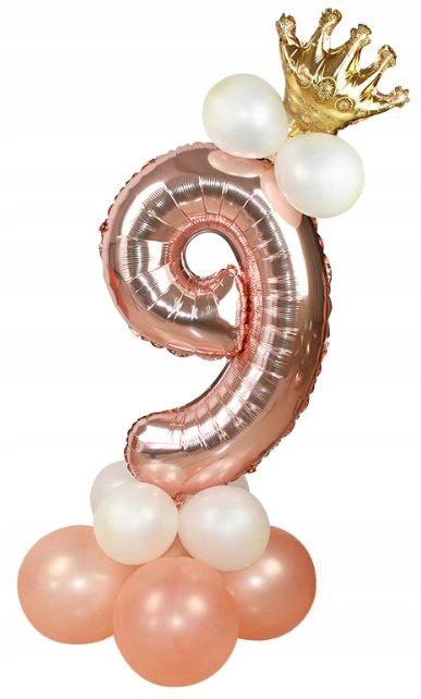 ZESTAW BALONÓW URODZINY cyfra 9 rose gold korona