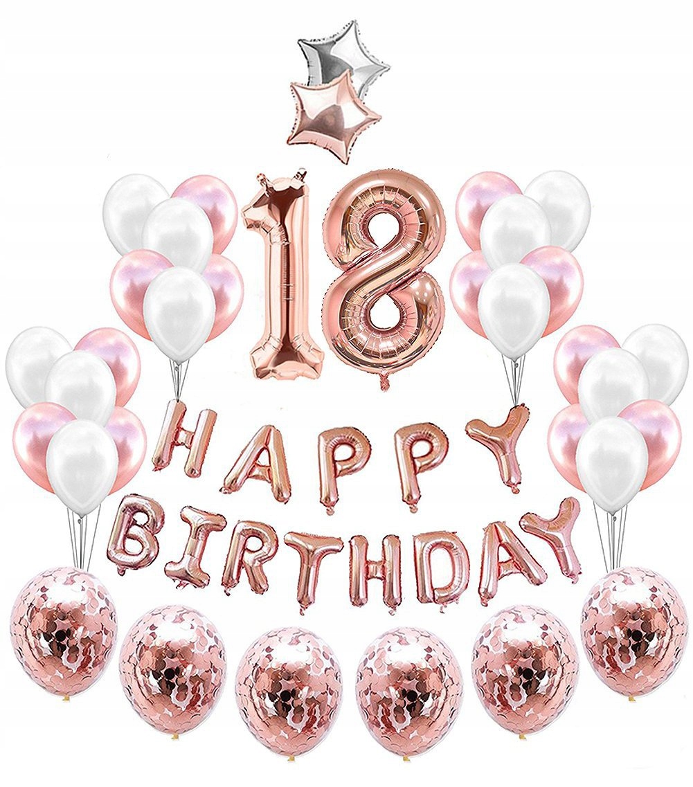 Zestaw balonów dekoracyjnych na 18 urodziny. Rewelacyjnie sprawdzi się również jako element dekoracji.