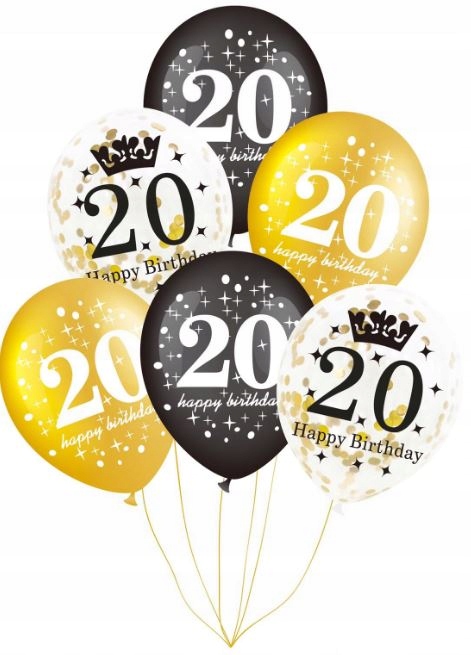ZESTAW BALONY 21 URODZINY dwudziestka złote czarne