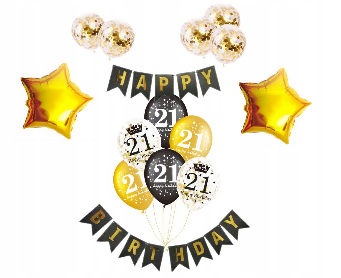 ZESTAW BALONY 30 URODZINY trzydziestka złote czerń