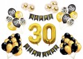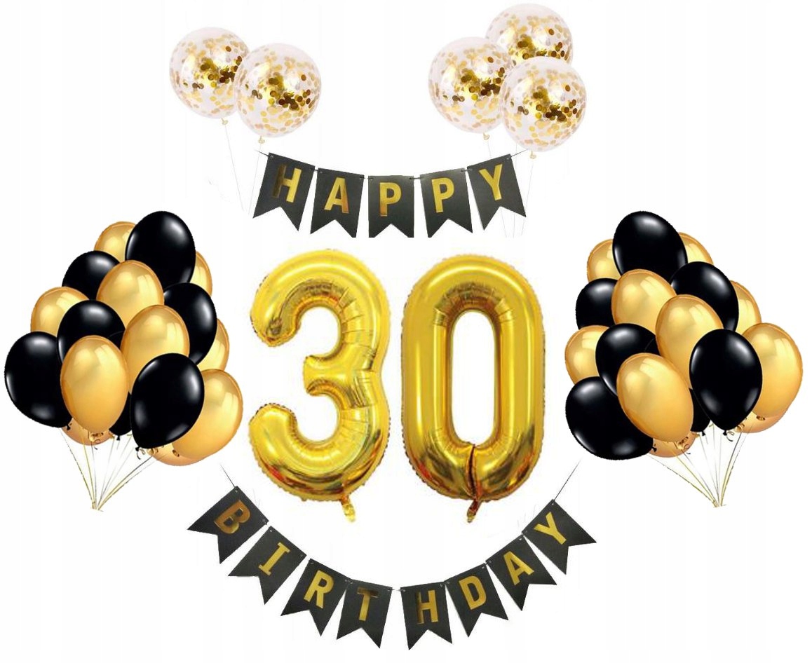 - balony Metaliczne czarne z białym napisem happy brithday i cyfrą - Wielkość około 30 cm - 4 sztuk