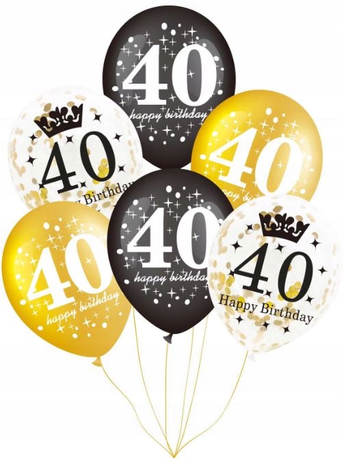 Zestaw balonów dekoracyjnych na 40 urodziny. Rewelacyjnie sprawdzi się również jako element dekoracji.