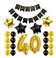 ZESTAW BALONY 40 URODZINY trzydzieste czarne złote