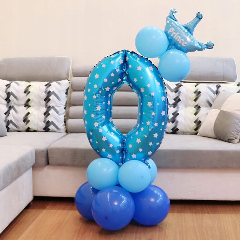 ZESTAW BALONY FOLIOWE gumowe URODZINY cyfra 0 NIEB