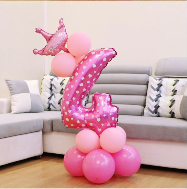 - 7 szt balon gumowy jasno-różowy 15cm (4szt na podstwie, 3szt na cyferce - pod kotoną)