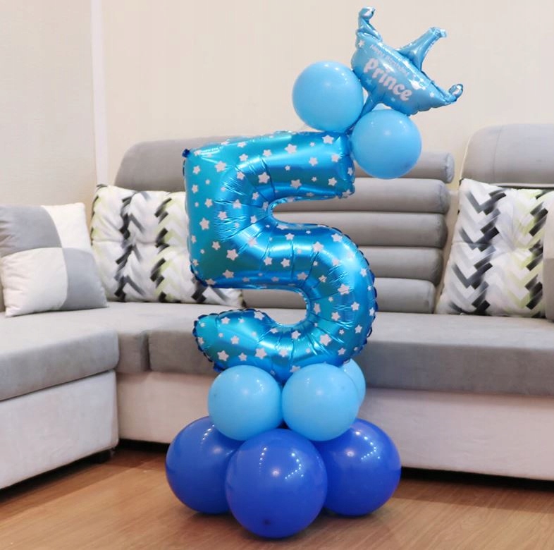 ZESTAW BALONY FOLIOWE gumowe URODZINY cyfra 5 nieb
