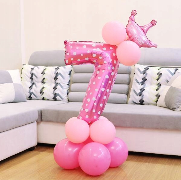 ZESTAW BALONY FOLIOWE gumowe URODZINY cyfra 7 róż