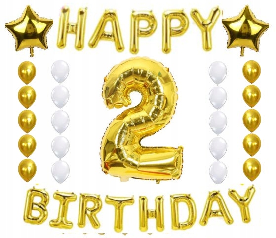 ZESTAW BALONY URODZINY 2 dwa złoto białe 28 szt