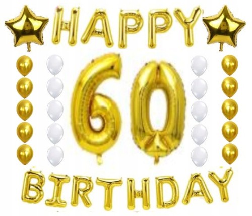 Zestaw balonów dekoracyjnych na 60 urodziny. Rewelacyjnie sprawdzi się również jako element dekoracji.