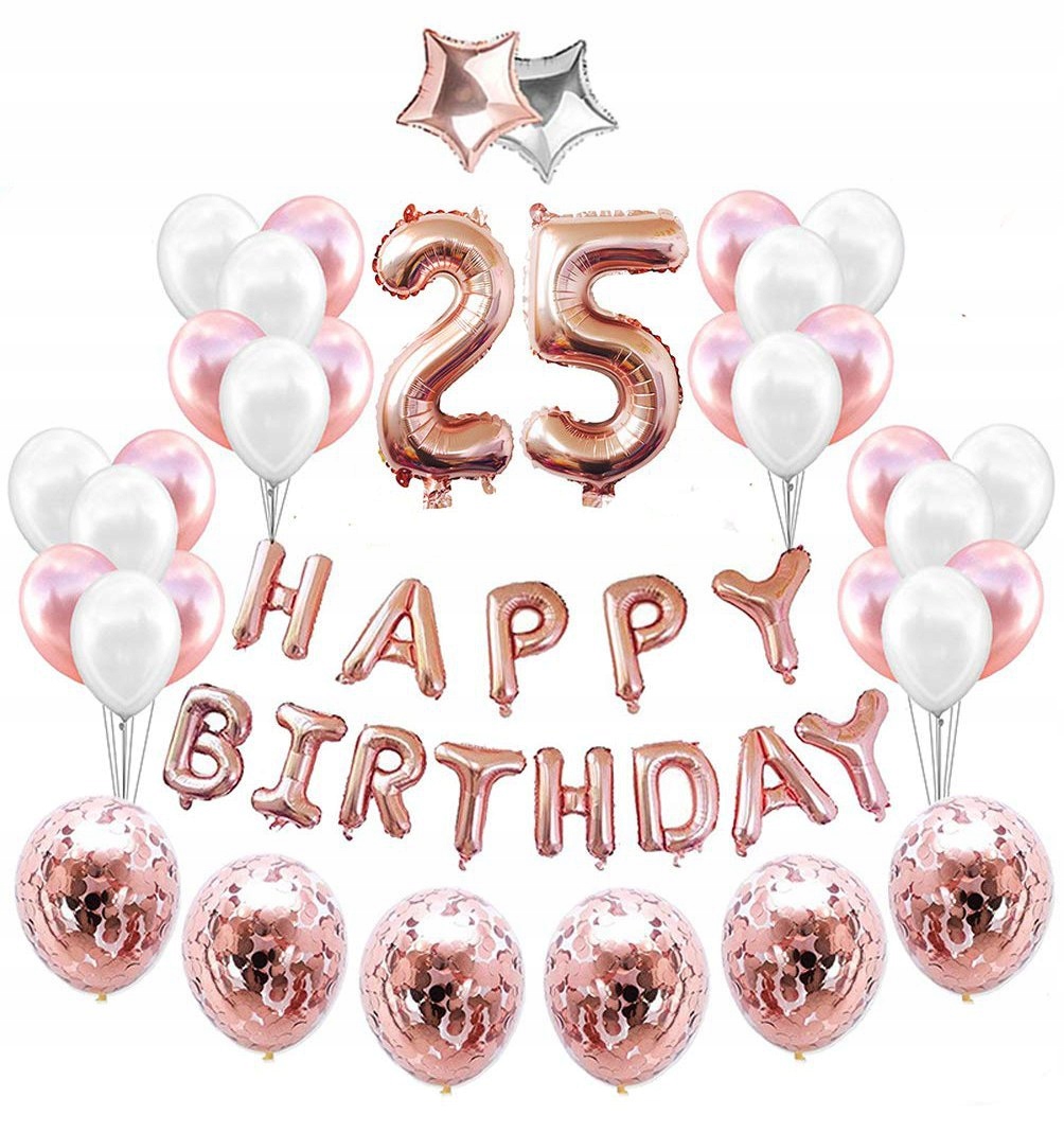 Zestaw balonów dekoracyjnych na 25 urodziny. Rewelacyjnie sprawdzi się również jako element dekoracji.