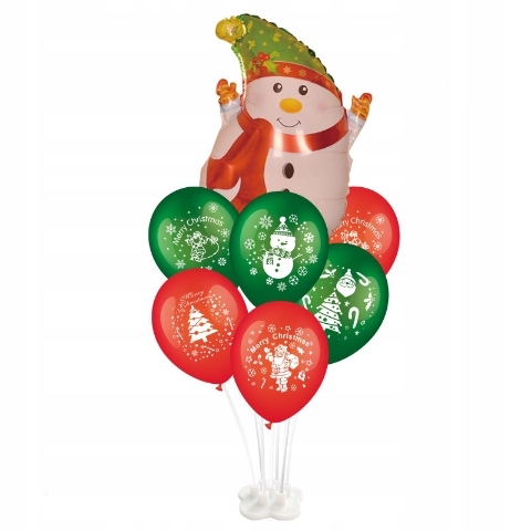 Zestaw balonów świątecznych Bałwan. Rewelacyjnie sprawdzi się jako dekoracja stołu świątecznego, wigilii firmowej , również jako element dekoracji wielu imprez okolicznościowych.