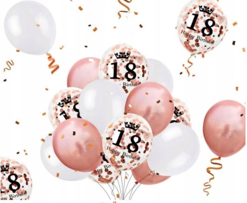 Zestaw balonów dekoracyjnych na 18 urodziny.