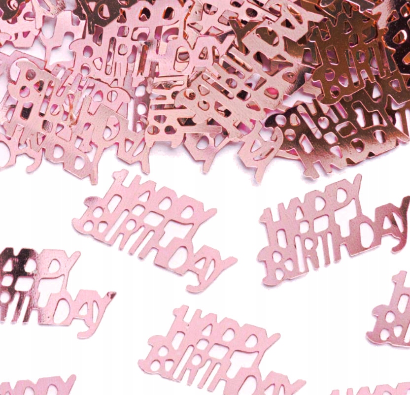 Konfetti metalizowane w kształcie napisu HAPPY BIRTHDAY w kolorze różowego złota - 15 g.