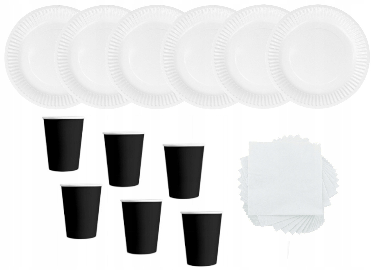 ZESTAW kubeczki czarne talerzyki serwetki białe