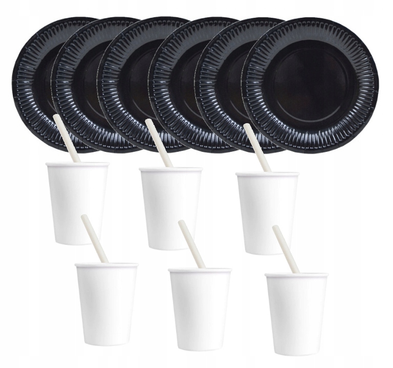 ZESTAW słomki kubki białe talerzyki czarne urodzin