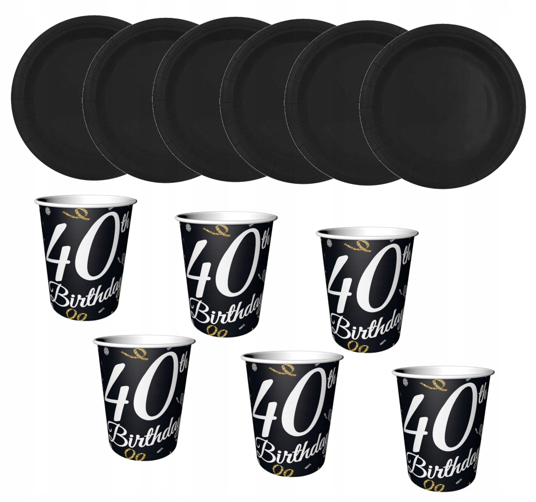 ZESTAW urodziny kubki talerzyki czarny 40 urodziny