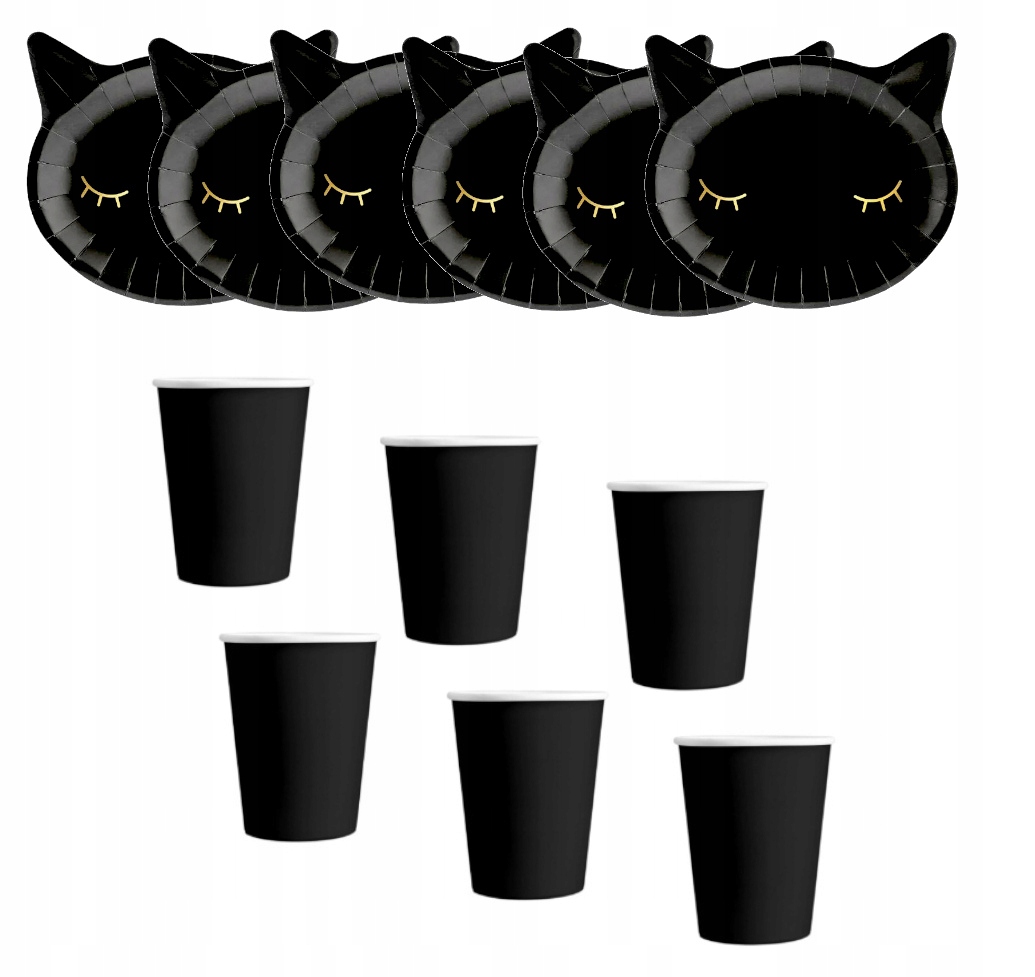ZESTAW urodziny kubki talerzyki czarny kotek dekor