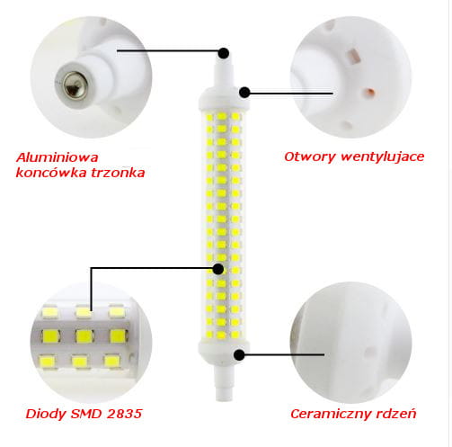 Żarówka LED o mocy 6 W i trzonku R7S oparta na technologii SMD 2835. Z powodzeniem zastąpi halogeny liniowe 78 mm do 60 W, osiągając przy tym oszczędność energii na poziomie 80%. Produkt o szerokim kącie świecenia 360 stopni i wysokiej wydajności świetlnej.