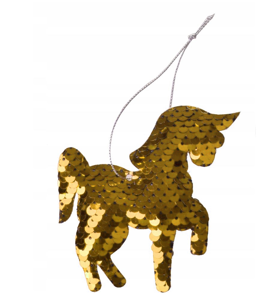 Świąteczna dekoracja wykonana z materiału i cekinów stworzy wspaniałą świąteczną atmosferę i doda uroku każdej choince.