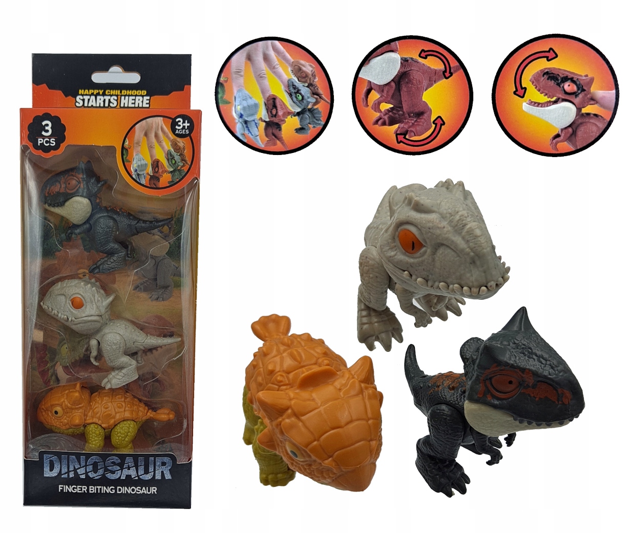 Zestaw 3 szt figurki dinozaury zabawki na prezent dinozaur gryzący palce