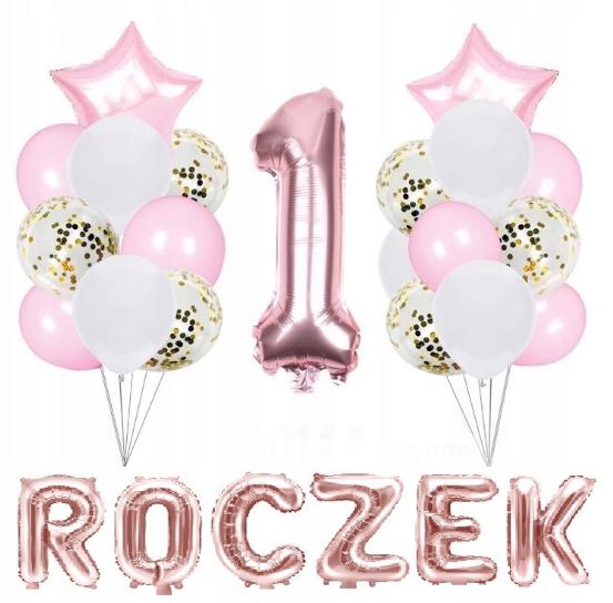 Zestaw balonów dekoracyjnych na pierwsze urodziny, roczek. Rewelacyjnie sprawdzi się również jako element dekoracji.