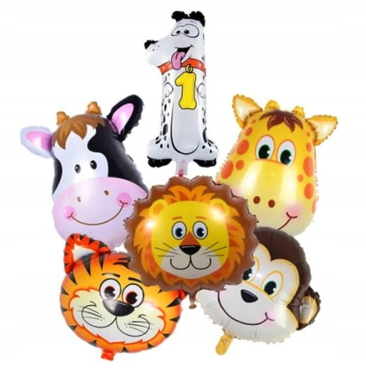 Zestaw balonów 1 urodziny ZOO zwierzęta roczek