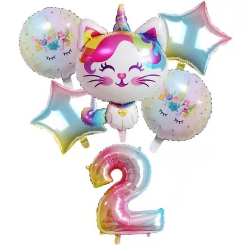 Zestaw balonów 2 drugie urodziny kotek jednorożec