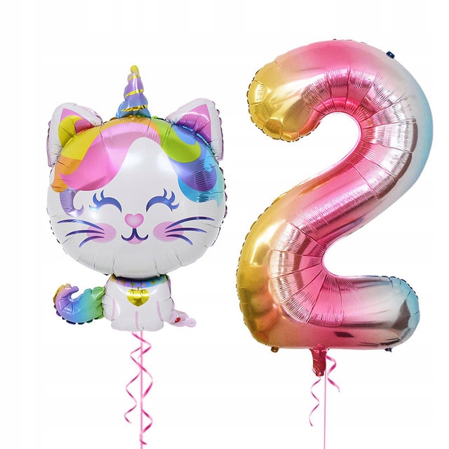 Zestaw balonów 2 drugie urodziny kotek z rogiem