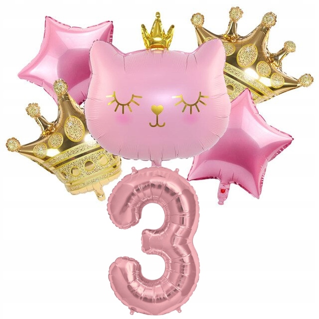 Zestaw balonów 3 trzecie urodziny kotek kot różowy