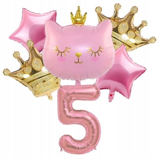 Zestaw balonów 5 piąte urodziny kotek kot różowy