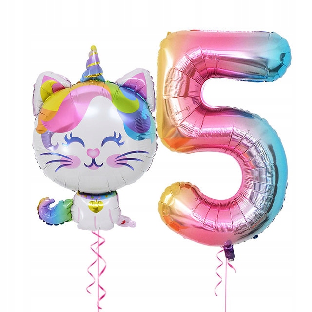 Zestaw balonów 5 piąte urodziny kotek z rogiem