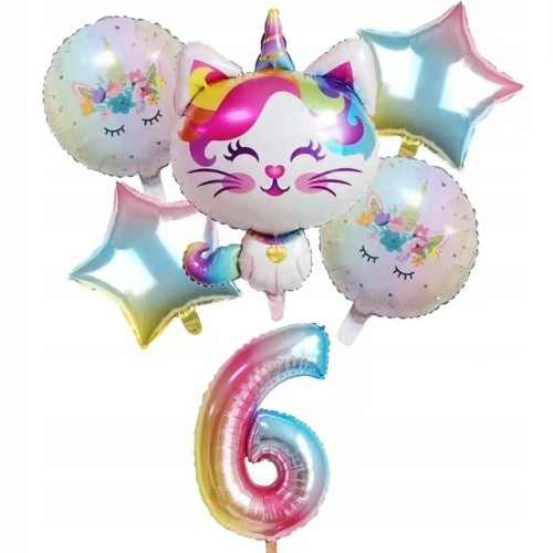 Zestaw balonów 6 szóste urodziny kotek jednorożec