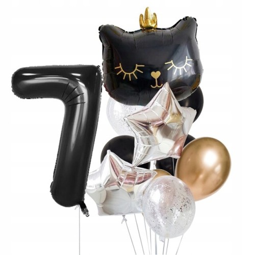Zestaw balonów 7 siódme urodziny kotek kot czarny