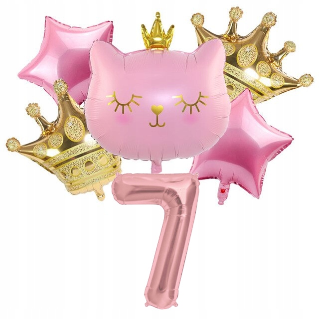 Zestaw balonów 7 siódme urodziny kotek kot różowy