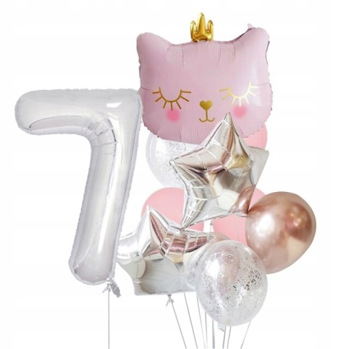 Zestaw balonów 7 siódme urodziny kotek kot różowy
