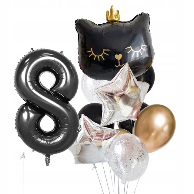Zestaw balonów 8 ósme urodziny kotek kot czarny