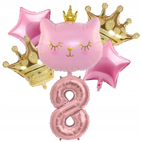 Zestaw balonów 8 ósme urodziny kotek kot różowy
