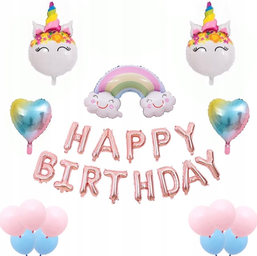 Zestaw balonów TĘCZA jednorożec serce urodziny hel
