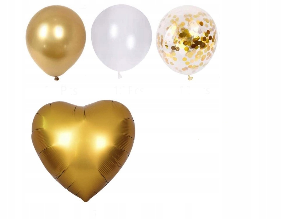 ZESTAW BALONÓW GUMOWYCH Z KONFETTI w kolorze BIAŁYM I ZŁOTYM.