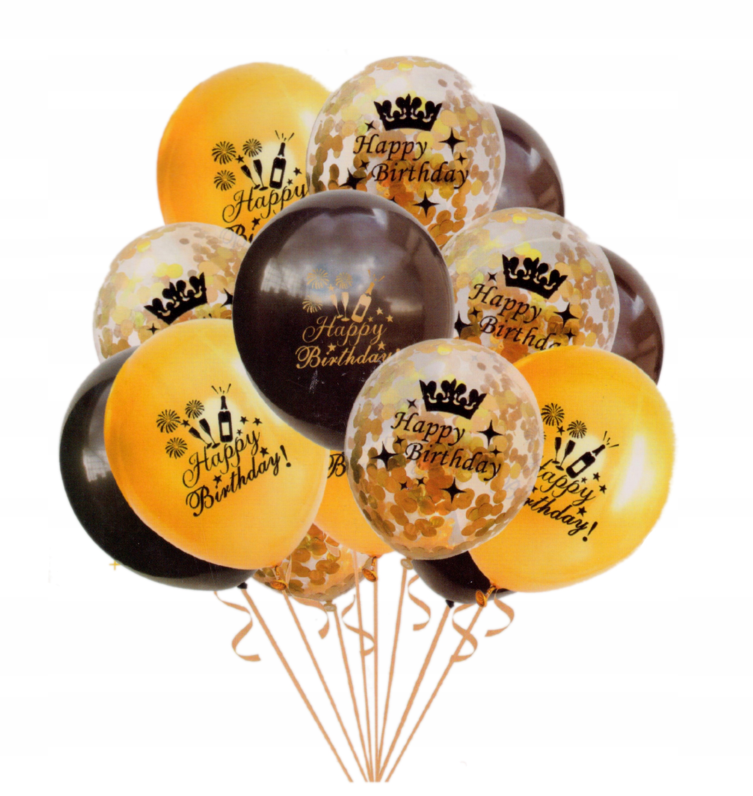Zestaw balonów czarn złoty konfetti happy birthday