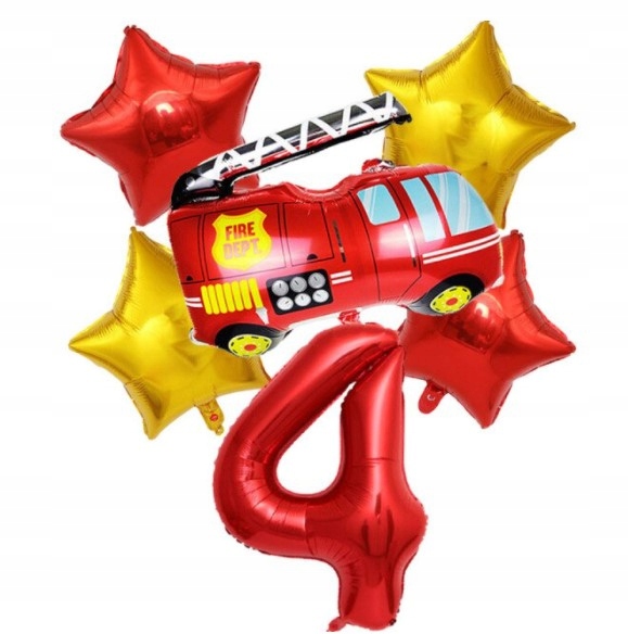 Zestaw balonów czwarte 4 urodziny Strażaka Straż