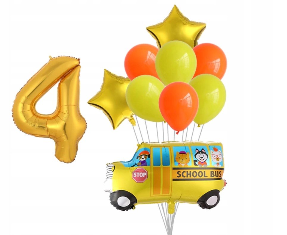Zestaw balonów czwarte urodziny 4 autobus szkolny