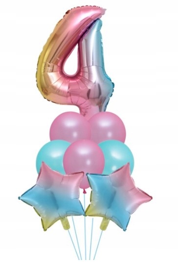 Zestaw balonów czwarte urodziny 4 tęczowe unicorn
