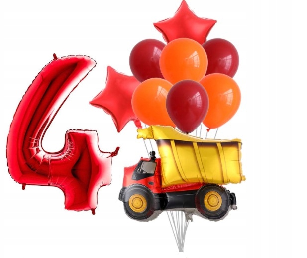Zestaw balonów czwarte urodziny ciężarówka pojazd