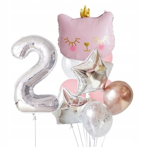 Zestaw balonów drugie 2 urodziny kotek kot różowy