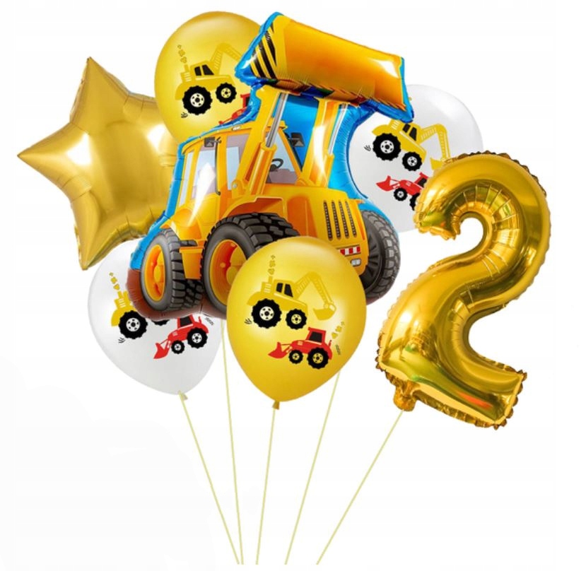 Zestaw balonów drugie 2 urodziny pojazdy koparka