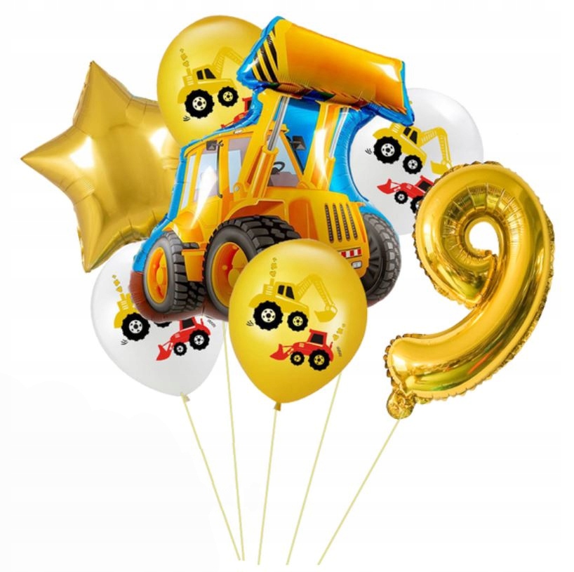 Zestaw balonów dziewiąte 9 urodziny pojazd koparka
